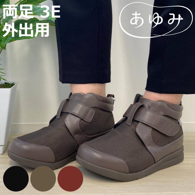 介護シューズ あゆみ ハイフィット 両足 3E S〜LL 外出用 ( 介護靴 靴 片足 レディース メンズ ハイカット 外出 軽量 転倒予防 シンプル おしゃれ ケアシューズ 介護用 お出かけ 屋外 男女兼用 高齢者 幅広 甲高 軽い )