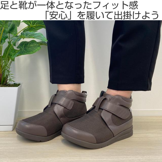 女性の足はとても繊細です。大切な足を守るため、足と足首をしっかりと包み、「足と靴が一体化」となるよう設計された外出用シューズです。坂道の下りや階段に不安がある方、歩行にふらつきがある方に最適です。安心してお出かけを楽しむことができます。