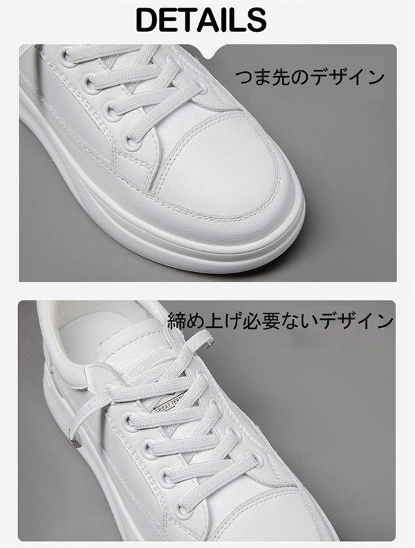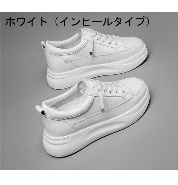 厚底スニーカー レディース インヒールスニーカー ヒール4cm スリッポン ゴムソール PU 編み上げ 厚底 白い靴 小さいサイズ 大きいサイズ