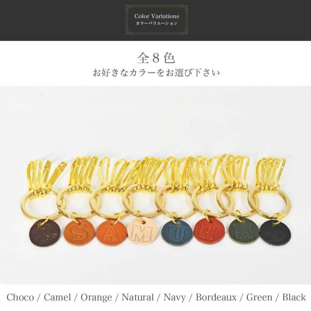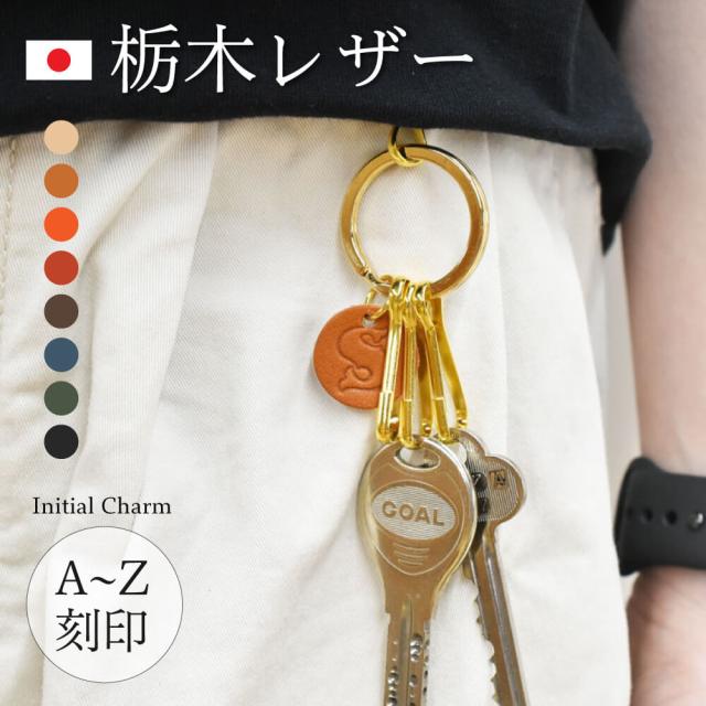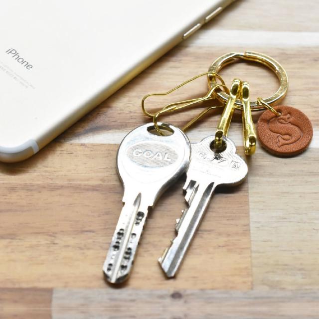 4本の鍵の取り付けが可能なキーリング。イニシャルを刻印できるチャーム付きでシンプルでオシャレです。