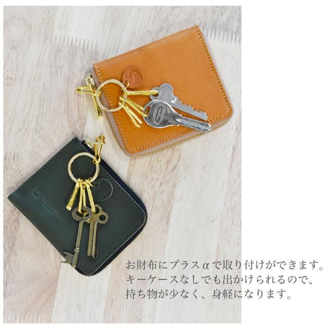 ゴールド調の二重リングと本革との相性が良く、余計な装飾が無いためどんなお財布や鞄とも相性抜群です。