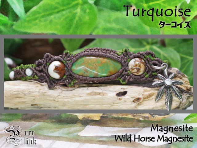 『ターコイズ』『ワイルドホース』ガンジャシルバー925マクラメ編ブレスレット