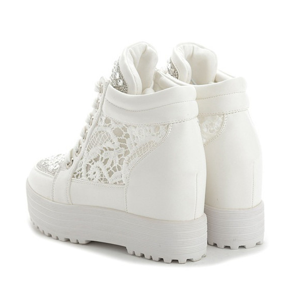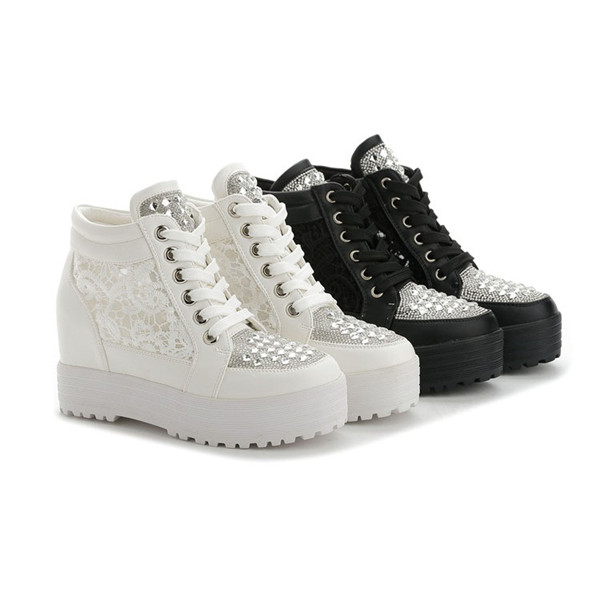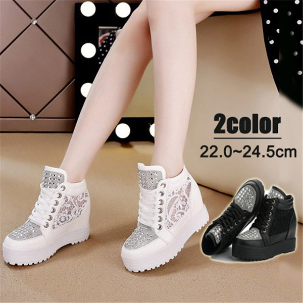 スニーカー レデイース シューズ 厚底スニーカー ハイカット ハイカットスニーカー レース 透け感 かわいい ホワイト インヒール 厚底 歩きやすい ヒール9cm ブラック カジュアル おしゃれ フェミニン キラキラ ビジュー 22.0 22.5 23.0 23.5 24.0 24.5 di831c0c0la