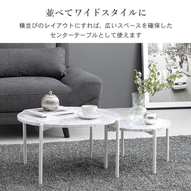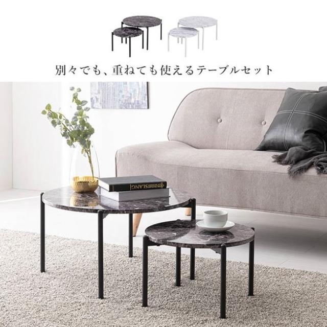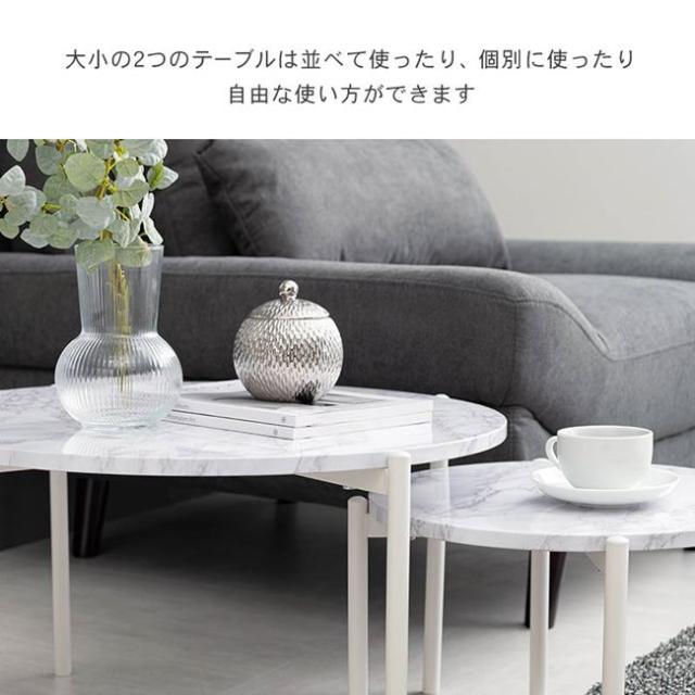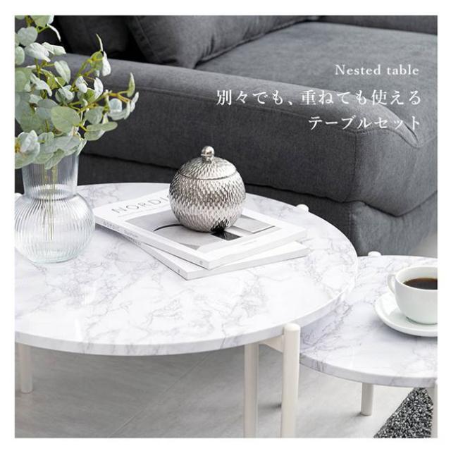 ネストテーブル 丸型 2個セット サイドテーブル センターテーブル おしゃれ 大理石調天板