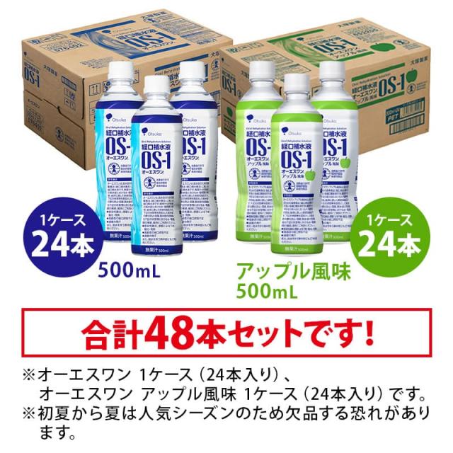 【大塚製薬 OS-1 オーエスワン 経口補水液 500mL×24本+アップル風味 500mL×24本 セット】[海外出荷NG]
