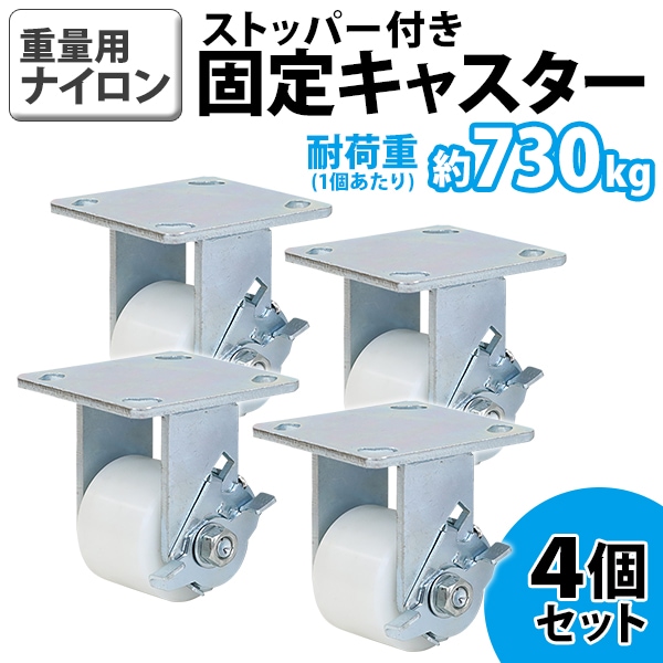 キャスター 固定キャスター 重量用 ナイロン製 ストッパー付き 4個セット 重量用キャスター 耐荷重約730kg1個あたり 車輪直径約70mm 幅約50mm 固定車 ナイロン車輪 ブレーキ付き 工場 倉庫 作業 運搬 cstrnyfisn70rb4p