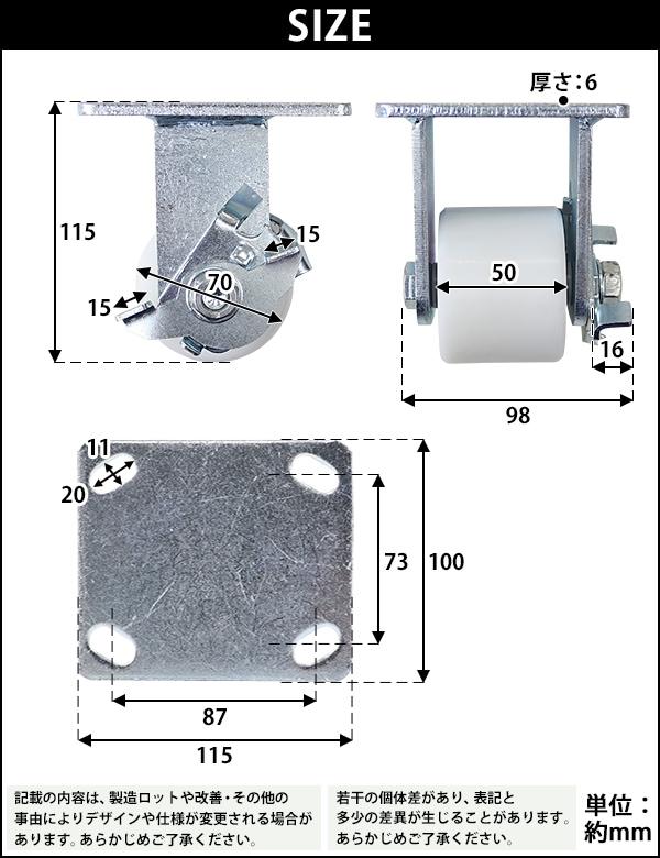 | 材質 | 亜鉛メッキスチール(金具)、ナイロン(車輪) |