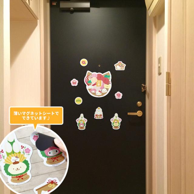 お正月デコマグネット しめ縄 ゆうパケット対応210円〜サンリオキャラクターズ フレークタイプ 玄関ドア・冷蔵庫用
