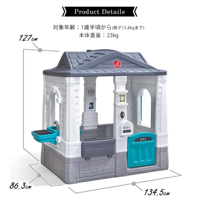 ・プレイハウス内高さ:1.23m ・座席耐重量:15.8kg ・ドアベル、時計(手動) ・単4電池2本必要(含まれません) |