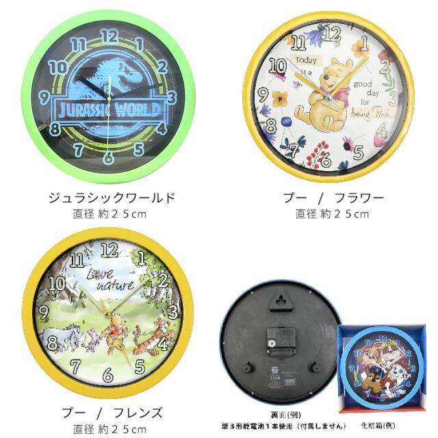 掛け時計 ディズニー ミッキー ミニー パウパトロール ジュラシック 25cm 壁掛け 壁時計 キャラクター 子供 時計 Disney