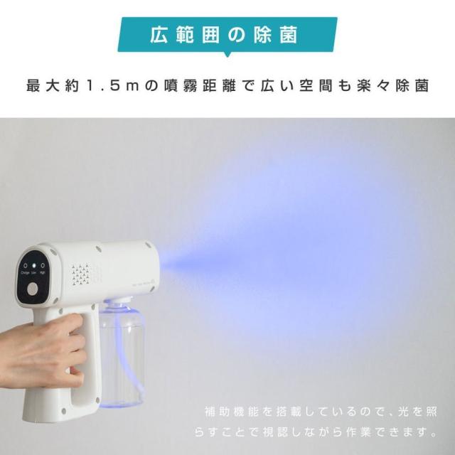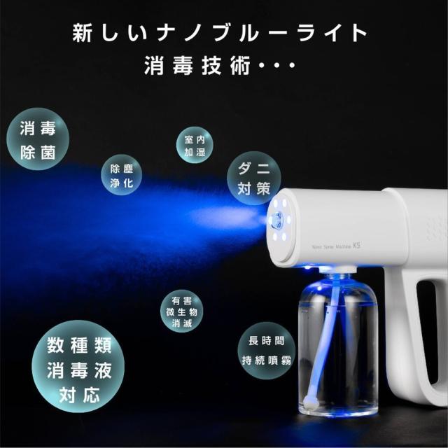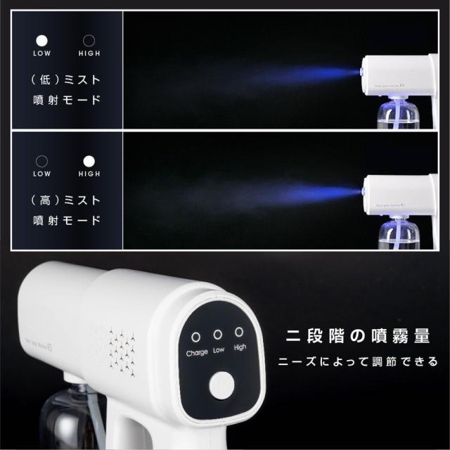 ナノスプレーガン アルコール 電動スプレー 除菌 消毒スプレー 自動噴霧器 ミストガン 380ml ブルーライト除菌機能付 消毒除菌 ウイルス対策 hd-nm395