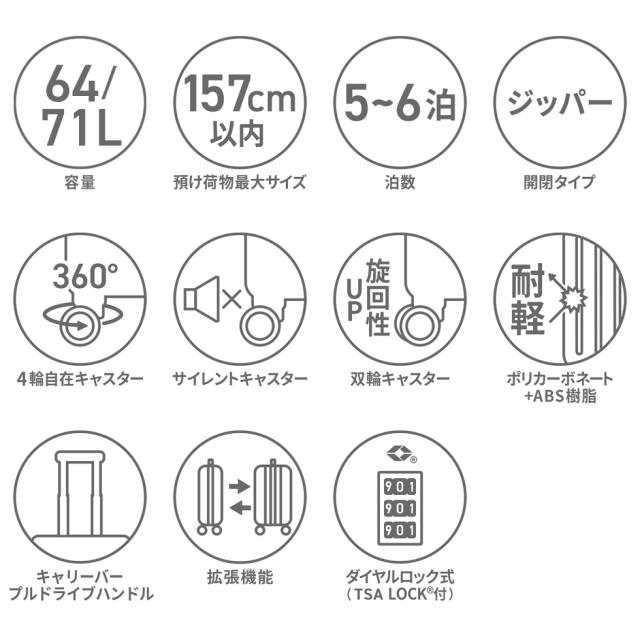 ace./エース/ACE/ace.TOKYO/エーストーキョー/コーナーストーン2-Z/CORNERSTONE2-Z/コーナーストーン/CORNERSTONE/スーツケース/キャリーケース/キャリーバッグ/ファスナー/ジッパー/ハードケース/64L/64リットル/71L/71リットル/大きめ/大きい/大容量/TSAロック/TSロック/プルドライブハンドル/4輪/双輪/ダブルキャスター/静音/静音キャスター/5〜6泊/5泊/6泊/旅行/トラベル/出張/正規品/ブランド/メンズ/レディース/Mサイズ/M/フロントオープン/エキスパンダブル機能/拡張/10年保証/保証