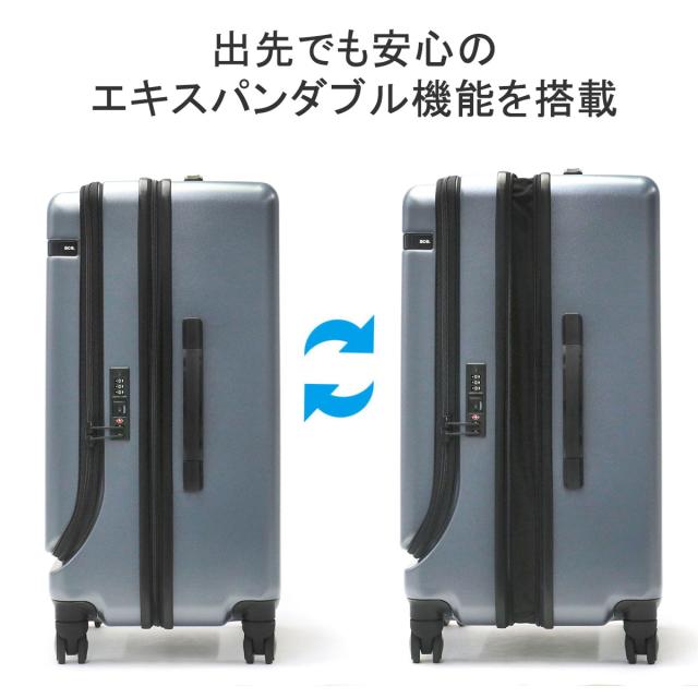 広々とした収納部には、荷崩れを防いでくれるバックルベルトが備わっており衣類などもすっきり収納可能。目隠しに役立つ仕切りも設けられているため、安心してお使いいただけます。また、本体には荷物量に合わせてマチ幅を拡張できるエキスパンダブル機能を搭載。中央部分に設けられたファスナーを開く事で、簡単に容量を調節できるため、出先で荷物が増えた際も簡単に対応できます。さらに、TSA対応のダイヤル式ファスナーロックや、快適な移動を実現する旋回性に優れた静音キャスター等、便利な機能性を装備した機能的な仕上がりも魅力となっています。