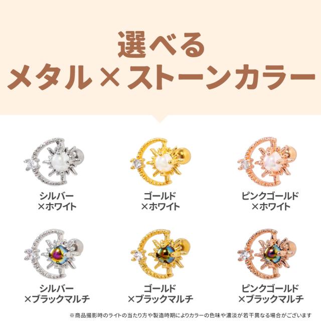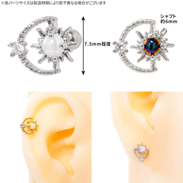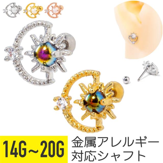サン & ムーン ストレートバーベル 14G 16G 18G 20G サージカルステンレス ジュエル シルバー ゴールド ピンクゴールド イヤーロブ ヘリックス アウターコンク 軟骨ピアス ボディピアス 太陽 月