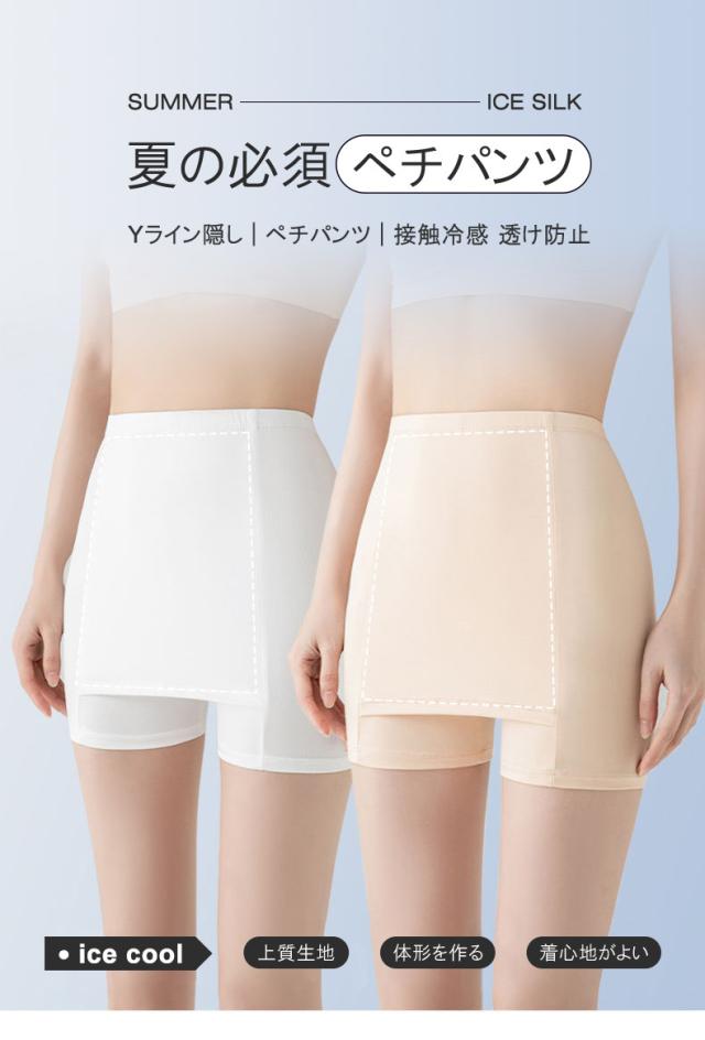 Yラインペチパンツ 接触冷感 Yラインカバー インナー パンツ レディース ペチパンツ ペチコート Yラインカバー 冷感 涼しい 蒸れない ペチスカート 透け防止 ブラック ベージュ ホワイト Yラインカバーペチコート