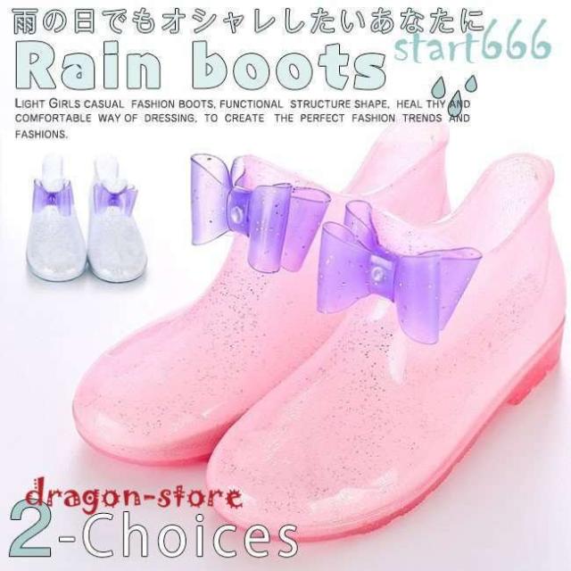 レインブーツリボンキッズ可愛いシンプル幼児小学生通園通学女の子おしゃれ梅雨雨具長靴