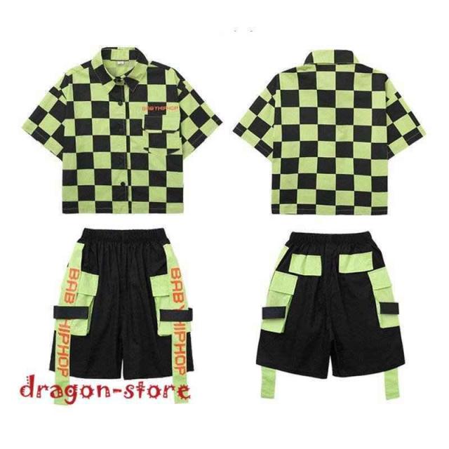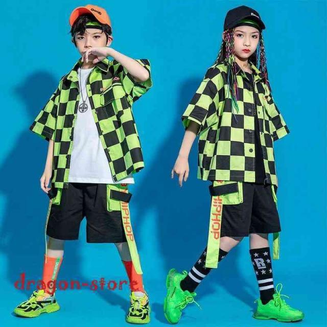 キッズダンス衣装ダンス衣装HIPHOPヒップホップ子供セットアップ夏女の子男の子キッズダンストップスパンツ半袖シャツ