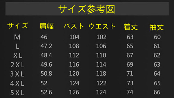 | サイズについての説明 | サイズ:M L XL 2XL 3XL 4XL 5XL |