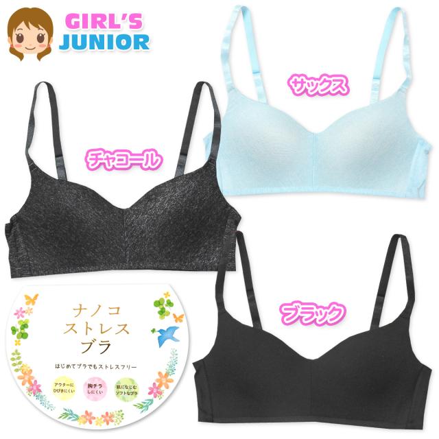 【送料無料】女児 ジュニア ノンワイヤー ブラジャー ナノコ ノンワイヤー ホックなし 下着 子供 A65 A70 A75 yg-1280【メール便対応】