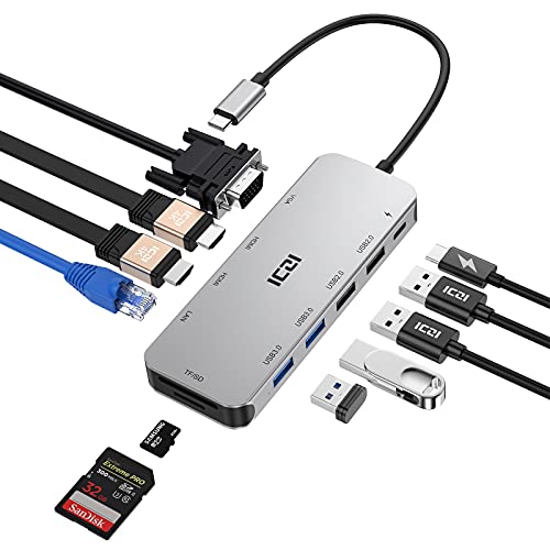 デュアルHDMI ICZI USB C ハブ 11-in-1 Type C ハブ トリプルディスプレイ4K 30Hz HDMI 1080P 60Hz VGA 5Gbps USB 3.0 / 2.0 100W PD対応 1Gbpsイーサネッ