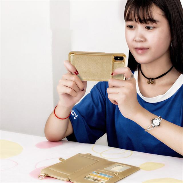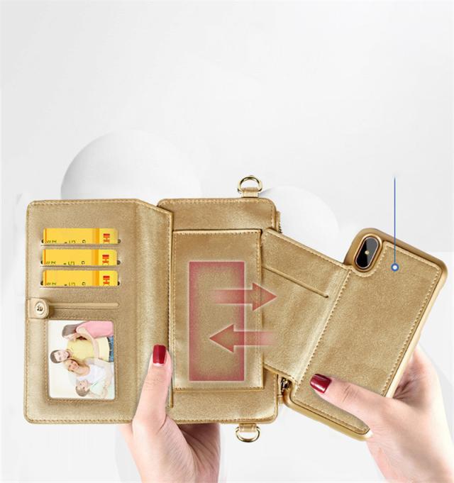 スナップボタンで取り外し可能な大容量の収納スペース、カード大量収納。