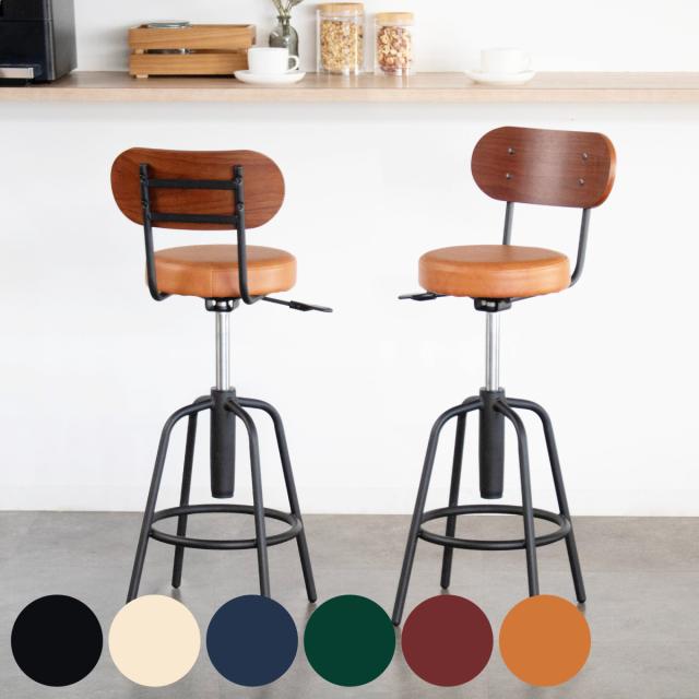 カウンターチェア 2脚セット 座面高61〜71cm 回転 タムチェア ( バー チェア ハイチェア 背もたれ付き チェアー いす 椅子 セット 昇降式 ダイニング カフェ キッチン 360度 レザー調 おしゃれ ヴィンテージ調 )