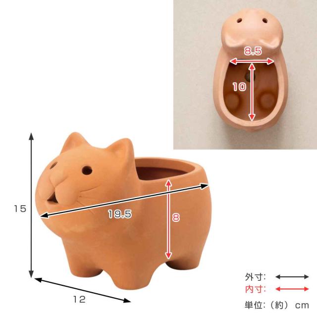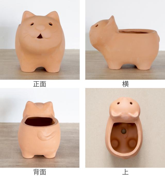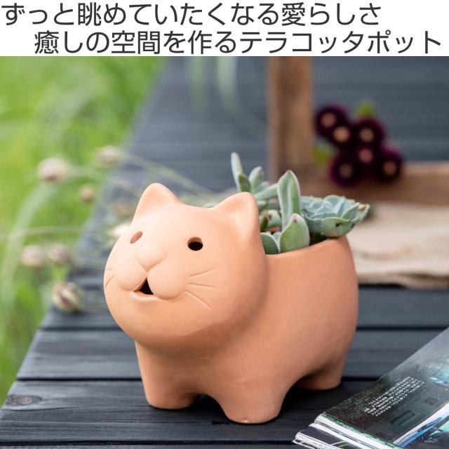 プランター アニマルテラコッタポット ネコ 3号 ( 植木鉢 プラントポット 植物用ポット ミニポット 鉢 ポット 素焼き 3号鉢 卓上 スタンド 置く 植物 花 観葉植物 多肉植物 サボテン 園芸 直植え 穴あり テラコッタ インテリア )