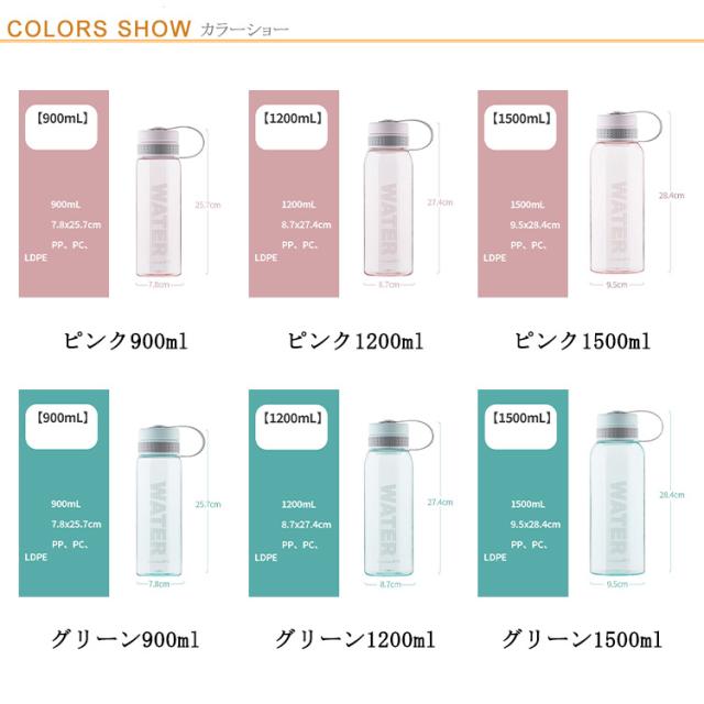 送料無料 水筒 1500ml 1200ml ウォーターボトル プラスチック スポーツボトル 直飲み 大容量 プラスチック 大人 スポーツドリンクボトル 軽い 高い密封性 軽量 耐冷耐熱 運動水筒 四季用 透明 ボトル 携帯便利 通勤 プレゼント 900ml