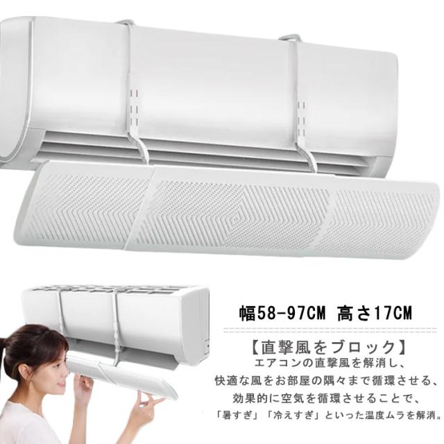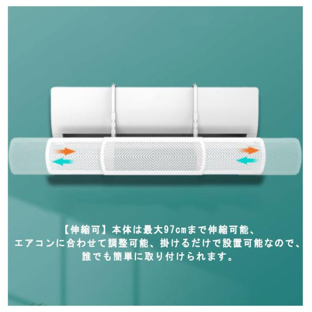 【58-97cm伸縮可】エアコン風よけカバー 風向き調整板 エアコン用風よけ板 自由調整 冷房 暖房 通用 風除け 壁掛け式 穴あけ不要 取り付け簡単 子供 妊婦 お年寄り 掛けるだけ
