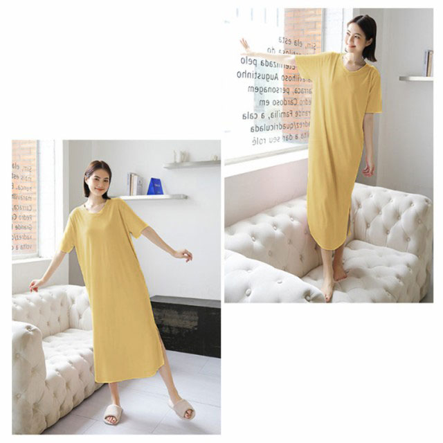 | 1日を快適に過ごせる柔らか素材で仕立てたワンピース。 素肌に心地よく、柔らかいストレッチ素材でいつでも着たくなるほど肌触りが気持ちいい。 吸湿速乾性のある生地なので、汗が乾きやすく、ワンピースとして着るのはもちろん、インナーやジムウエアにもおススメです。 全体的にはゆったりとした作りで体型カバー効果も抜群。 ロング丈なのに長めスリット入りで歩きにくさを軽減してくれます。 お休み前のひと時や部屋でのリラックスタイムにピッタリ、旅行用のパジャマにもおススメ。 | |