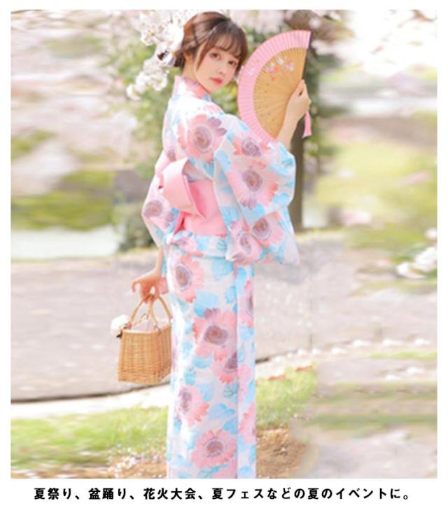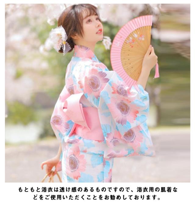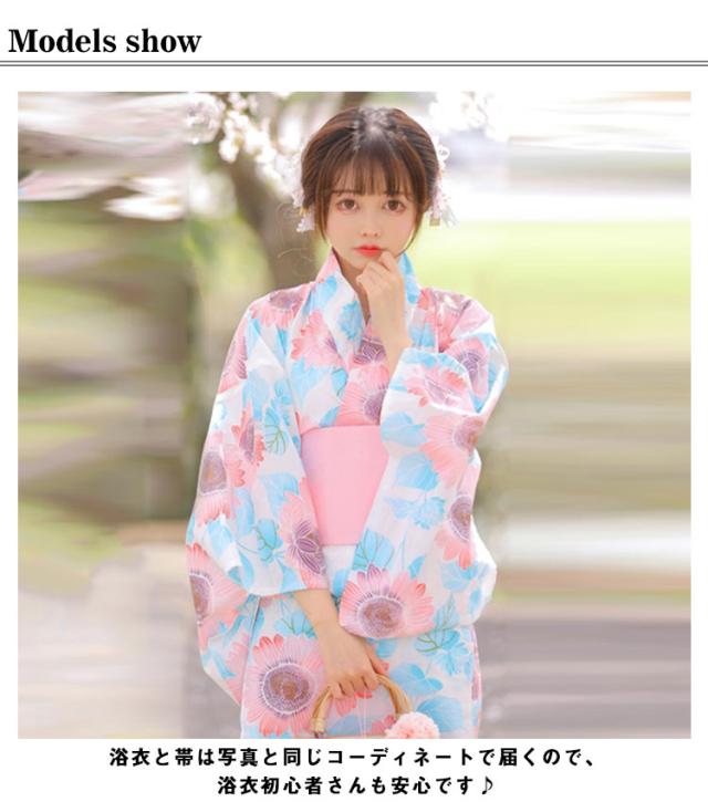 | 3点セット内容:浴衣*1、作り帯(リボン付き)*1、扇子*1 浴衣と帯は写真と同じコーディネートで届くので、浴衣初心者さんも安心です♪ 夏祭り、盆踊り、花火大会、夏フェスなどの夏のイベントに。 フリーサイズ(適応身長約155〜165cm)です。 もともと浴衣は透け感のあるものですので、浴衣用の肌着などをご使用いただくことをお勧めしております。 | |
