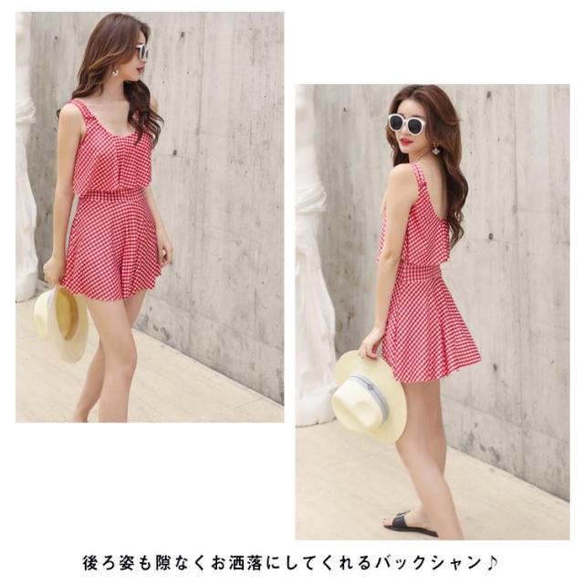 水着 ワンピース レディース オールインワン ハイネック 体型カバー水着 ママ水着 20代 30代 40代 オトナ女子 フリル フレアスカート 可愛い お洒落 チェック エレガント セクシー お腹 お尻 太もも カバーアップ