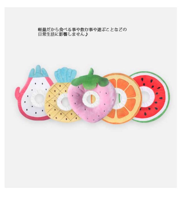 | 大事なペットを守ります!クッションエリザベスカラー たっぷりの綿が入った柔らかなクッションで傷舐め防止などしつつ付けたらそのまま枕としても使える便利なアイテムです。 伸縮ロープで簡単調節!スナップボタンの嫌な音がなく、マジックテープ式の毛が絡みの心配もありません。 軽量だから食べる事や飲む事や遊ぶことなどの日常生活に影響しません♪ かわいいフルーツデザイン、癒されシルエットを作ります。 | |