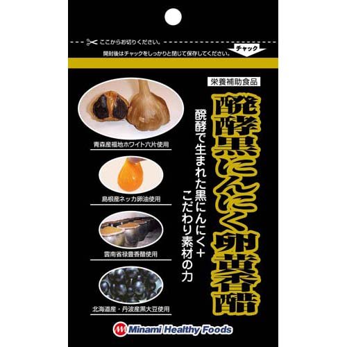 ●醗酵黒にんにくに、健康な鶏から得られた卵黄油、黒大豆、禄豊香醋粉末を配合し、飲みやすいようソフトカプセル化。