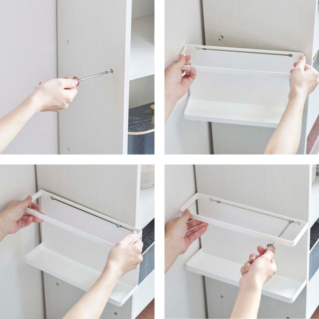 カラーボックスに元からあるネジをそのまま活用できるので、取り付け・取り外しが簡単にできます。壁に穴を開けたくない方や、賃貸にお住まいの方にも最適です。