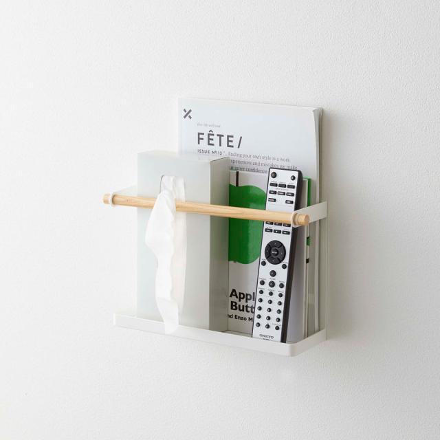 《 シンプル ウォールラック 壁面 小物 ティッシュボックス ブックラック 壁 リモコン 新聞 ホワイト 白色 白 色 ナチュラル yamazaki リビング 北欧 便利 おすすめ オススメ アイデアグッズ 用品 収納術 アイデア カラーボックス取り付け お洒落 オシャレ 木製 》