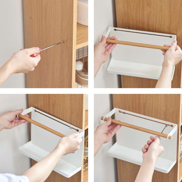 カラーボックスに元々あるネジをそのまま使用するので、用意するものはドライバー1本です。また、付属の木ネジを使えば壁面への取り付けも可能です。