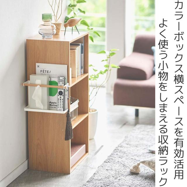 tosca カラーボックス横収納ラック トスカ ( ラック カラーボックス横 収納 リモコンラック サイドラック マガジンラック デッドスペース 有効活用 山崎実業 浮かせる収納 棚 収納ラック フック ティッシュケース 雑誌 おしゃれ )