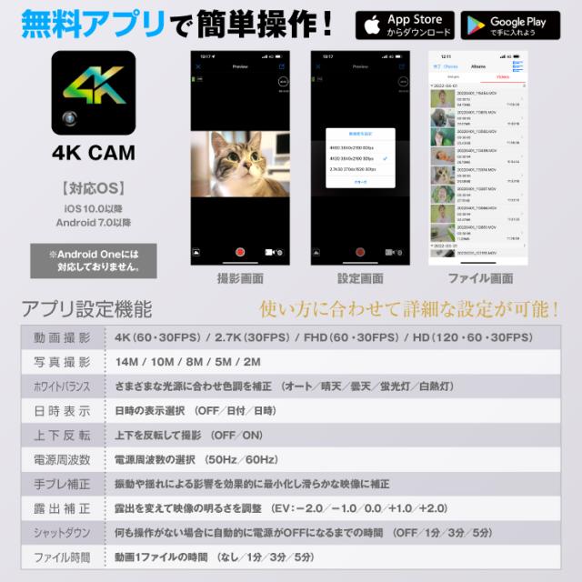 【7】スマホでモニタリング、撮影、再生、削除、設定も簡単!専用アプリでラクラク操作!