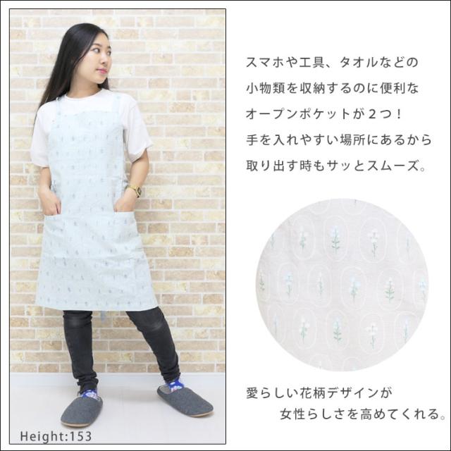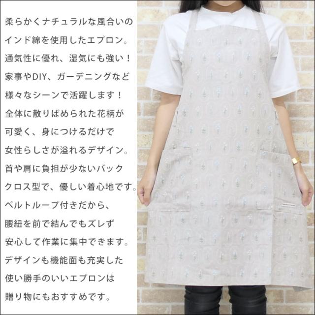 レディースエプロン フラワー バッククロスエプロン チュニック インド綿 通気性 コットンエプロン カフェ 肩掛け 女性 女子 母の日 ギフト 誕生日 プレゼント