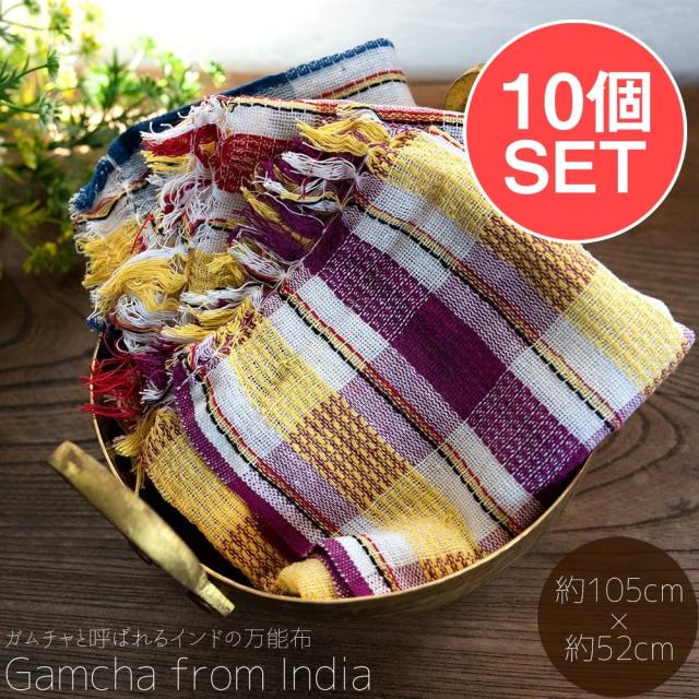 【お得な10個セット アソート】ガムチャと呼ばれるインドの万能布【約105cm×約52cm】 / セット、布、台布巾、台ふきん、ダスター、小さな布、キッチンクロス、ナフキン、ランチョンマット、日除け、風よけ、万能布、ショール、スカーフ 布とファブリック 【インドとアジアンの布