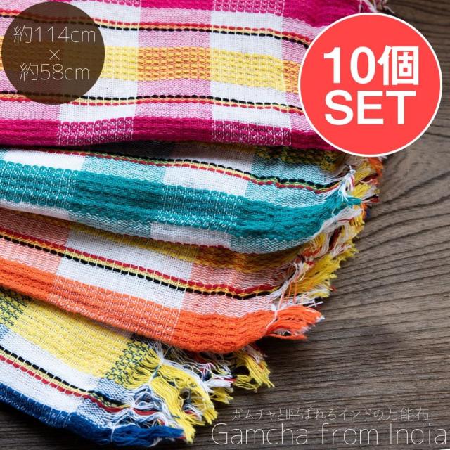 【送料無料】 【お得な10個セット アソート】ガムチャと呼ばれるインドの万能布【約114cm×約58cm】 / 台布巾 台ふきん ダスター 小さな布 アジア キッチンダスター ファブリック エスニック
