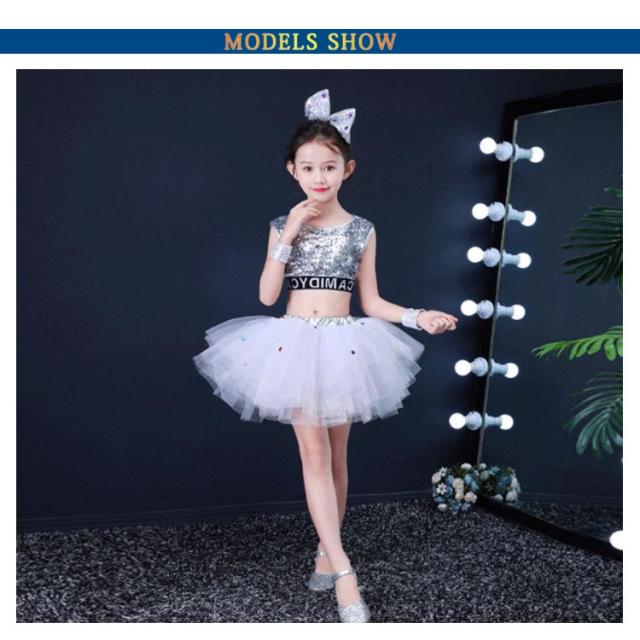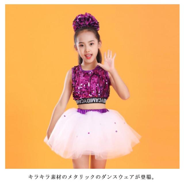 キッズ ダンス衣装 スパンコール 子供 ダンス 服 チュール ジュニア ガールズ 衣装 こども 派手 目立つ スカート ヒップホップ チアダンス 発表会 キラキラ HIPHOP 韓国 送料無料