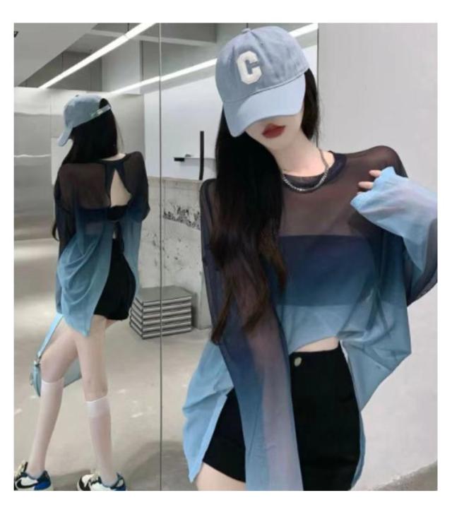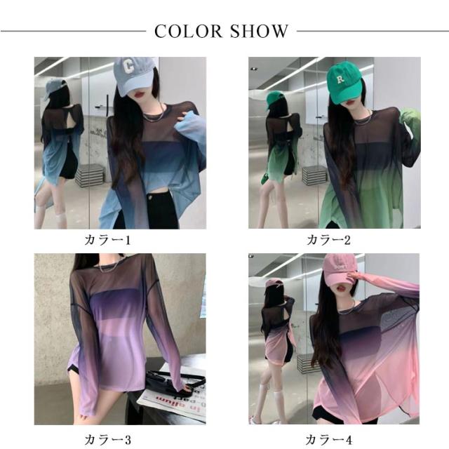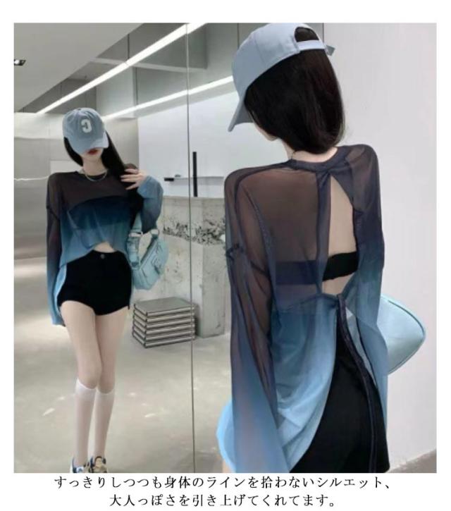 バックオープン×グラデーション!Tシャツ レディース トップス ロングTシャツ シアートップス ダンス衣装 ジャズダンス ヒップホップ 韓国ファション S M L XL
