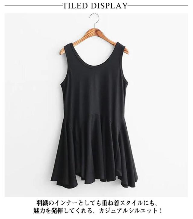 インナーワンピース レイヤード風 タンクトップ ワンピース キャミワンピ インナーキャミ 重ね着 ノースリーブ アシンメトリー 春 夏 秋 カジュアル お尻が隠れる 大きいサイズ M-4XL