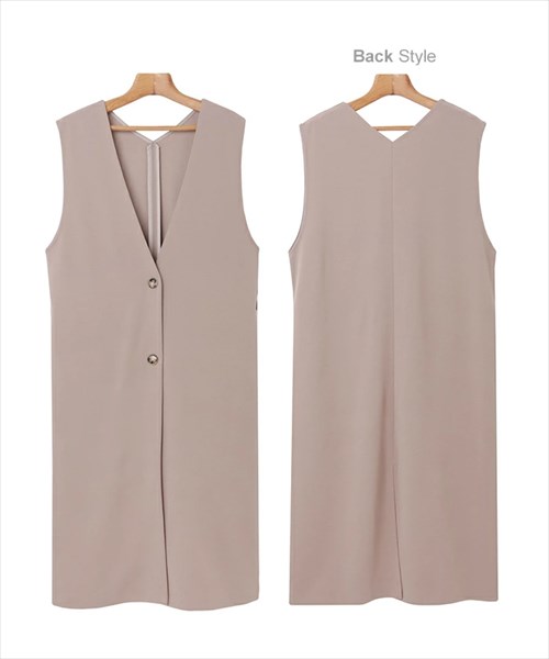 女性らしい深めのVネックがすっきりと美しいロングジレは
