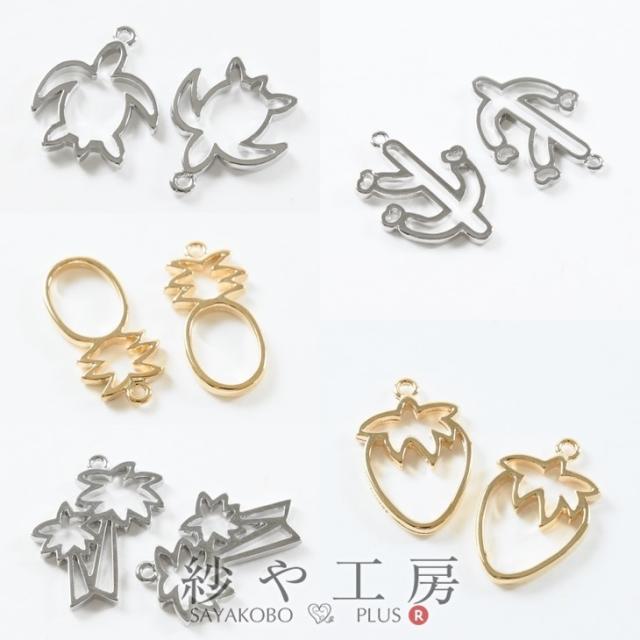 空枠 紗や工房オリジナル 【選べる2色/7デザイン】 液漏れしづらい ゴールド シルバー 2個 フルーツ 植物 レジン台 レジン枠 セッティング 土台 アクセサリー パーツ パーツ フレーム レジン 枠 レジンセッティング 問屋