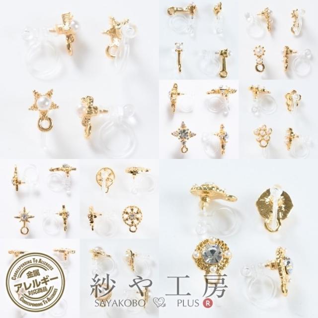 イヤリングパーツ 樹脂 パール付 ストーン付 【選べる20種】 ゴールド 2ペア 金属アレルギー対応 樹脂イヤリング アクセサリーパーツ