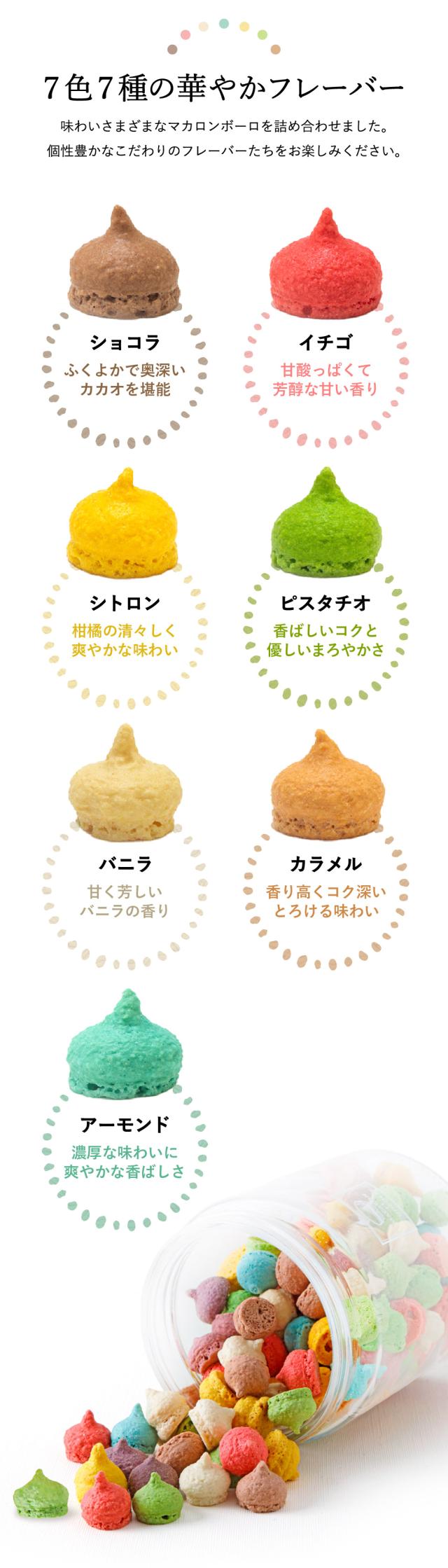●内容量 :350g(茶(ショコラ)、赤(イチゴ)、黄(シトロン)、緑(ピスタチオ)、白(バニラ)、ベージュ(カラメル)、青(アーモンド))