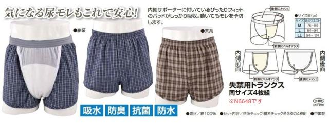 尿漏れ パンツ トランクス メンズ シニア 尿漏れ 対策 失禁用トランクス(2枚組み) 綿100% チェック柄 ブラウン ネイビー 失禁パンツ 紳士服 男性 下着 肌着 前側にベルオアシス シニアファッション 50代 60代 70代 80代 lou p6648